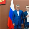 Награду из рук Сергея Меняйло молодой ученый Азамат Валиев получил за исследования в области сейсмостойкости крупнопанельного жилого фонда Владикавказа (под руководством к.т.н. доцента Заурбека Абаева).